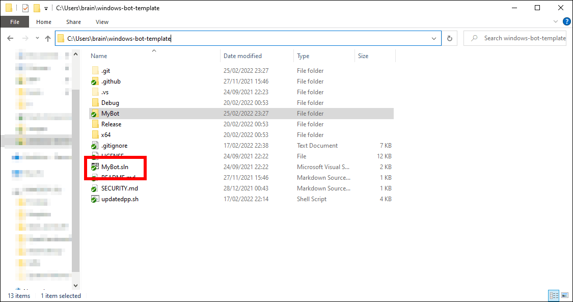 3. Double click on the MyBot.sln file in the folder you just cloned:
